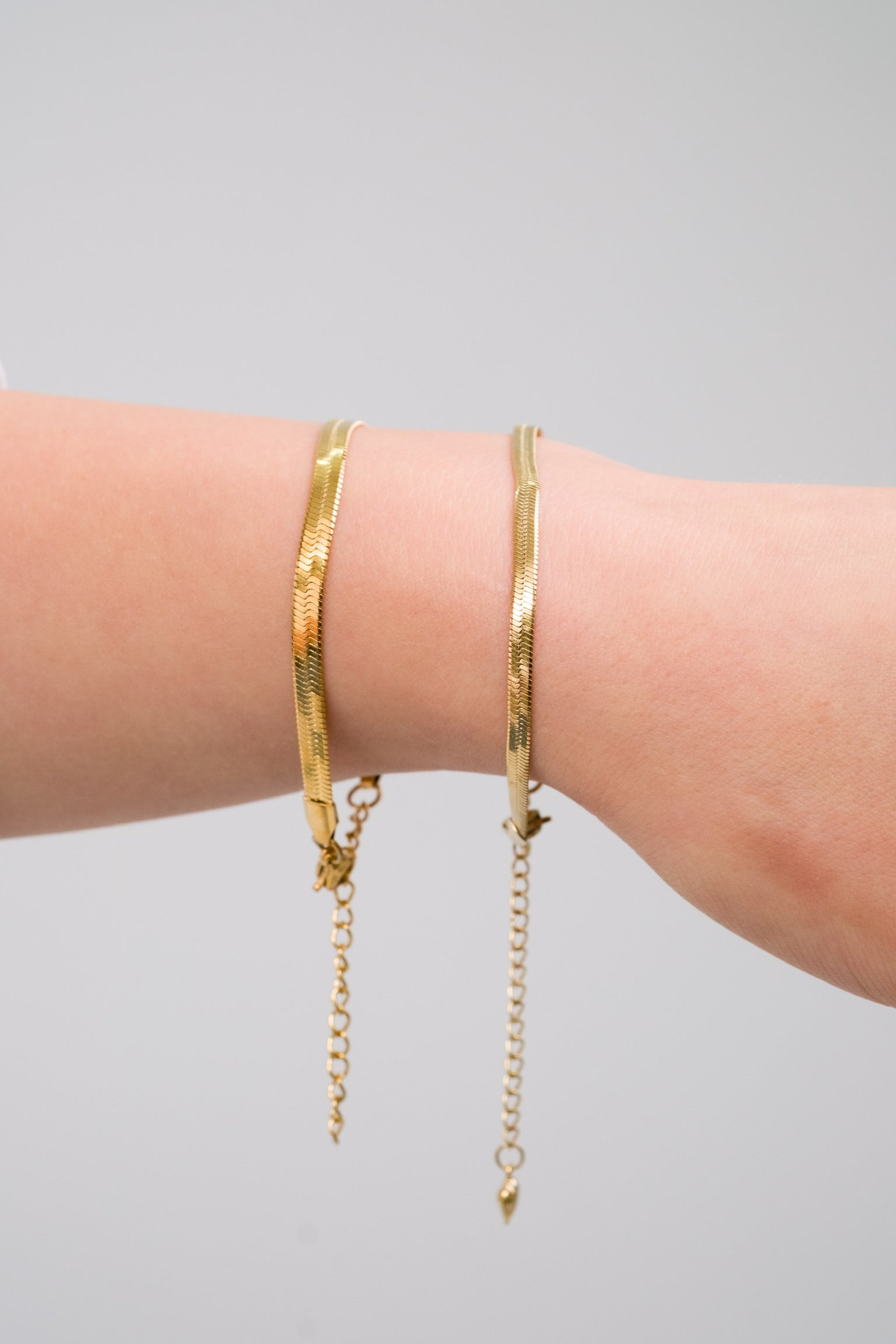Smooth snake-chain that moves like liquid gold. Waterproof, tarnish-free and hypoallergenic for effortless everyday elegance.