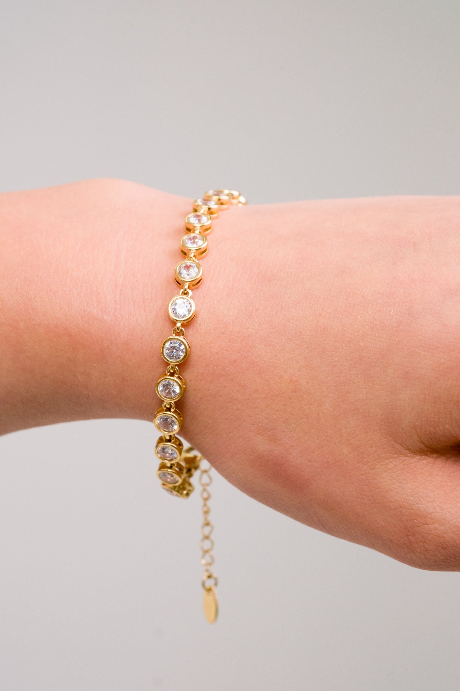 A continuous row of prong-set crystals for nonstop fire. Waterproof, tarnish-free, and hypoallergenic, iconic brilliance.