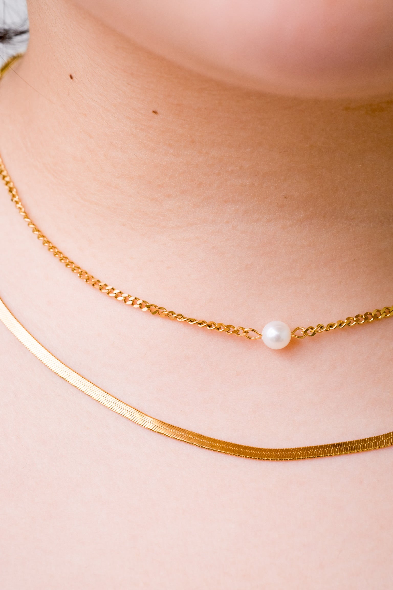 Two fine layers, one polished, one accented, effortless layered beauty. Waterproof, tarnish-free, and hypoallergenic.